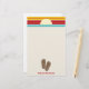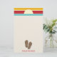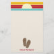 70er inspirierte Strand, den das themed Briefpapier, das eine Illustration eines Paares Brauns kennzeichnet, Reinfälle unten umdreht. Personifizieren Sie mit Ihrem Namen umdrehen darunter Reinfälle. Sonnenuntergangentwurf der Spitzeneigenschaften rotes Gelbes und Blaues.