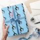 drehend Gymnastik-Silhouette auf blau Geschenkpapier
