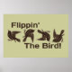 Vögel in verschiedenen Orientierungen (nicht diese Art der Orientierung) und die Worte "Flippin' the Bird". Ja, das ist ziemlich goofy. Das liegt daran, dass wir ziemlich goofy sind. Trotzdem halten wir es für lustig. Und hey, die Vögel sind niedlich.