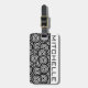 Schwarz-Weiß-Flasche mit Echokoriegel gemustertes Gepäckstück mit Lederband: weißes Tischchen mit vertikalem gothischem Schriftart