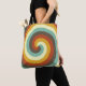 Dieses Bild zeigt ein lebendiges Spiralmuster, das aus mehreren farbigen Bändern besteht. Die Spirale fängt von der Mitte an und wirbelt hypnotisch nach außen, wobei jedes Segment einen anderen Schatten zeigt. Die Farbpalette umfasst warme Farbtöne wie Senfgelb, gebrannt orange und braun, im Kontrast zu coolem Pfefferminzgrün und einer blassblauen Vanille. Der Gesamteffekt ist retro und energetisch, der einen Vintagen Stil des 70ers hervorruft, der es visuell dynamisch und einnehmend macht.