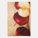 Stillleben einer Reihe von drei roten Äpfeln und Apfelhälfte. Texturfotografie