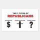 Die drei Arten von Republikanern: Super Rich, Super Religious, Super Dumb. Bist du ein Demokrat wie ich? Fütterte mit den Wegen der Regierung? Zeigen Sie Ihren Abscheu gegenüber den Republikanern mit meinem antirepublikanischen T - Shirt. Oder einfach nur einen dazu bringen, sich über jeden Republikaner lustig zu machen, den Sie vielleicht kennen!
