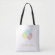 Dreimal Ballons Tote Tasche. Die farbenfrohen Ballons in Gelb, Türkis und Rosa haben eine Textnachricht: Feiern Sie gute Momente. Text kann personalisiert sein.