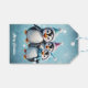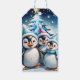 Drei bezaubernde Pinguine stehen im festlichen Win Geschenkanhänger