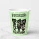 Diese Papiertassen sind hellgrün, drei schwarze Katzenmusiker spielen ihre Musikinstrumente stehend auf Noten mit schwarzen Musiknoten.