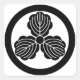 Auf Japanisch ist dies ein KAMON, der "Maru-ni mitsu kashiwa" genannt wird. Man sagt, dass die Blätter von Eichenbäumen als Tafeln verwendet wurden, wenn den Göttern Essen angeboten wurde.