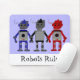 Ein cooles Design mit drei coolen Robotern in Blau, Grau und Rot. Ein hellblauer Hintergrund mit einem Roboter-Sprichwort.