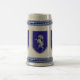Linda Baysinger die Malerei Pecks eines weißen Einhorns, mit einer Krone, auf blauem Schildhintergrund. Für die die Liebephantasie, Renaissance faires und mittelalterliche Tiere! Bild © Linda Baysinger Peck alle Rechte vorbehalten