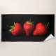 Drei Erdbeeren auf schwarzem Btcnm Strandtuch