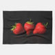 Drei Erdbeeren auf schwarzem ktm Geschirrtuch
