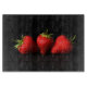 Drei Erdbeeren auf Schwarz - Drei rote Erdbeeren in einer horizontalen Reihe fotografiert auf einem einfachen schwarzen Hintergrund. © Alan Harman Fotografy 2013. Alle Rechte vorbehalten. www.alanharmanphotography.com 150518 Schneidebrett