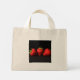 Drei Erdbeeren auf schwarzer Seite Mini Stoffbeutel