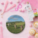 Landschaftliche Landschaftsansicht mit drei Eseln, die in Bildung über einem Feld in tadellos zeitgesteuerter Fotografie gehen.