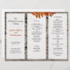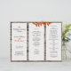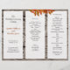 Rustikales Holz, Baumrinde, Herbstlaube Hochzeitsprogramm zu falten zu dritt. Qualitäts-Briefpapier mit roten Blattzweigen und Holzhintergrund. Verwenden Sie Vorlagen in drei Bereichen, um Ihr eigenes Zeremonieprogramm zu gestalten. Falten Sie nach dem Kauf.
