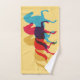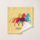 Drei farbenfrohe Pranzpferde Design Badetuch Set mit individueller Personalisierung und individuell anpassbarer Hintergrundfarbe.
