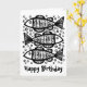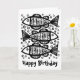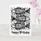 Ein Geburtstagskartendesign mit einer Hand gezeichnete drei Fischmotive. "Happy Birthday" vorne und innen. Wenn Sie Ihre eigene Begrüßungsnachricht hinzufügen, denken Sie daran, beide Grüße zu bearbeiten.