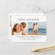 Modernes und frisches Design zeigt drei Ihrer Fotos. Zwei kleinere Fotos kreieren eine Band durch die Mitte Ihrer Save the Date Postkarte. Ein anderes Foto wird auf der Rückseite über eine persönliche Nachricht platziert. Die Rücksendeadresse ist im Preis inbegriffen. Der Slab-Serif-Text verleiht der Karte ihr modernes und angesagtes Aussehen. Der gesamte Text kann bearbeitet werden. Sehr einfache Vorlage zu verwenden.