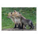Drei rote Fuchskits bilden eine niedliche Formation, da etwas ihre Aufmerksamkeit auf sich gezogen hat.