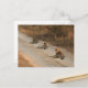 Schicken Sie eine Postkarte an einen Freund oder Liebsten mit dieser herrlichen Aussicht auf drei Cheetahs, die sich bei Tagesanbruch ausruhen. Der seltene Blick auf drei Käfige, die hintereinander auf einer schmutzigen Straße liegen.