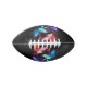 Drei helle, rote, lila, grüne, strukturierte Nachtschmetterlinge auf schwarz-leuchtendem Hintergrund.