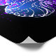Drei helle, rote, lila, grüne, strukturierte Nachtschmetterlinge auf schwarz-leuchtendem Hintergrund.