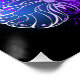 Drei helle, rote, lila, grüne, strukturierte Nachtschmetterlinge auf schwarz-leuchtendem Hintergrund.