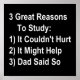 Kinder suchen immer nach Ausreden, nicht zu studieren, aber dieses Design dient als großartige, lustige Erinnerung von drei großen Gründen, warum sie studieren sollten. Außerdem funktioniert es jedes Mal, wenn sie einen Elternteil anschauen, der ihn trägt, oder jedes Mal, wenn sie im Spiegel schauen, wenn sie ihn selbst tragen.