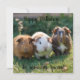 Auf dem Rasen sind drei Guinea-Schweine verschiedener Rassen abgebildet.