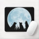 © Persönlichkeit des öffentlichen Lebens-Entwürfe 2010. Wunderlicher mousepad Entwurf mit drei Hunden, die auf einem grasartigen Gebiet mit einem Hintergrund des blauen Mondes sitzen.