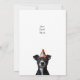 Das Bild zeigt drei Hunde, die eng zusammensitzen und jeweils einen farbenfrohen Hut aus Party tragen. Die Hunde, wahrscheinlich eine Mischung aus einer Art Labrador, einem Was, und einem Corgi, lächeln alle mit fröhlichen Ausdrücken und geben der Szene eine fröhliche und feierliche Atmosphäre. Der Hintergrund ist eine Holzwand mit einigen verstreuten Konfetti-Stücken, die das festliche Ambiente noch verstärkt.