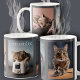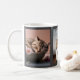 Drei Cat Fotos in einer Collage auf grauem Foto Tasse mit Platz für den Namen.