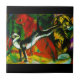 Wunderschönes und farbenfrohes Öl auf Leinwand Gemälde des deutschen Künstlers Franz Marc mit dem Titel "Drei Katzen". Die Katze im Vordergrund ist schwarz-weiß, auf ihren Vorderpfoten mit Hinterbeinen in der Luft stehend, während eine gelbe Katze und eine große rote Katze im Hintergrund sind. Wunderschöne Kombination aus Rot, Grüntöne, Gelb und lila. Fertigstellungsdatum: 1913.