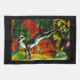 Wunderschönes und farbenfrohes Öl auf Leinwand Gemälde des deutschen Künstlers Franz Marc mit dem Titel "Drei Katzen". Die Katze im Vordergrund ist schwarz-weiß, auf ihren Vorderpfoten mit Hinterbeinen in der Luft stehend, während eine gelbe Katze und eine große rote Katze im Hintergrund sind. Wunderschöne Kombination aus Rot, Grüntöne, Gelb und lila. Fertigstellungsdatum: 1913.