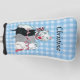 Dieses individuelle Cover des Golfclubs für Ihre Putters hat drei kleine Kätzchen in Schwarz, Weiß und Grau mit ihrer weißen Mutterkatze, die alle mit rosa Bögen auf einem Hintergrund von blau-weiß kariert. Passen Sie Ihren Namen mit der Vorlage an.