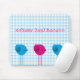 Drei wenig Vögel mousepad mit blauem kariertem Hintergrund.
