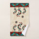 Mit diesem einzigartigen "One of a Kind" Set im Südwesten Kokopelli Badetuch dekorieren Sie Ihr Bad! Drei südwestliche Kokopelli spielen Flute und tanzen unter der Sonne auf einem Tan Sandstone Hintergrund...Umgeben von einer Südwestgrenze in Türkis, Orange & Schwarz! Das ist ein originelles Kunstdesign des Künstlers Kerry Miller.