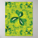 Drei Blatt-Kleber Muster Poster mit einer abstrakten Vektor-Abbildung der Kleber in frischen gelben und grünen Farben und viele dekorative Elemente um sie herum. Obwohl diese lustigen Blume im Gegensatz zu ihren vierblättrigen Geschwistern nicht als Glückspilz gelten, sind sie so hübsch und schön wie jeder botanische Teil der Natur, der in der Frühjahrssaison blühe.