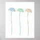 drei Blume aus blauem, Limonem und pfirsichfarbenem Poster