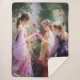 Ein von der KI generiertes Bild von drei jungen Mädchen, die in einem Blumengarten spielen