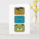 Drei Ungeheuer sind konfrontiert. Eine gute Tasse für Kinder (heiße Schokolade, albern - Kinder trinken keinen Kaffee!), weil sie manchmal diese Gesichter machen, und diese Karte wird sie dazu ermutigen, dies auch weiterhin zu tun.