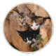 Drei kleine Kätzchen, die aus einem felsigen Wandloch mit neugierigen Augen herausgucken. Ich machte das Foto dieser hübschen Katzen auf einer griechischen Insel, ein Geschenk für Katzenliebhaber. fotografiert von Katho Menden