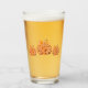 Drei pfirsichfarbene Kürbis mit orangefarbenen und braunen Spitzen. Die Stiele sind braun und auf beiden Seiten des Stifts sind orange und bunt verlassen. Der mittlere Kürbis ist der größte, die beiden anderen sind mittelgroß und liegen auf beiden Seiten des mittleren Kürbis.