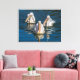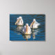 Ein wunderschönes nahes Foto von drei Pelikanen in einem See auf einer Leinwand gedruckt.