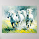 Drei Pferde, die durch das Feld der Blume laufen Poster