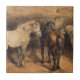 Dieses Design zeigt ein Gemälde des französischen Künstlers Théodore Géricault (1791-1824), der einer der Pioniere der Romantik-Bewegung war. Es zeigt drei Pferde in einem Stall. Die Pferde werden von hinten mit ihren Schwänzen auf der Ausstellung gesehen. Das Pferd in der Mitte hat einen kastanienbraunen Mantel und wird von zwei Pferden mit weißen Mänteln flankiert. Das Originalwerk wurde 1822 oder 1823 von Théodore Géricault gemalt.