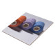 Drei Pools Thread oder Garn: orange, lila und blau.