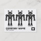 Eine attraktive moderne Visitenkarteschablone mit drei Schwarzweiss-Robotern. Passend für eine Vielzahl von Geschäften. Firmennamen auf der Front mit Namen- und Kontaktdetails über die Rückseite. Notiz:. Die Rechtecklogodekoration ist von einer von Zazzles Bild-Schriftart und kann für Dekoration behalten werden oder ersetzt werden, wenn sie bevorzugt wird.