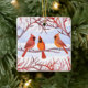 Drei rote Kardinäle in Schneezweigen Keramikornament
