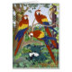 Scharlachrot der Macaws drei in einem tropischen Stting mit einem Affen und einige Ibises und ein Leguan